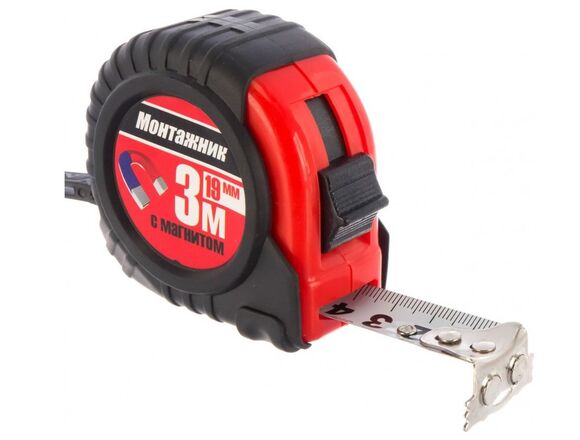 Рулетка МОНТАЖНИК 3м*19мм, МАГНИТ, ПРОТИВОУДАРНАЯ (10/60)