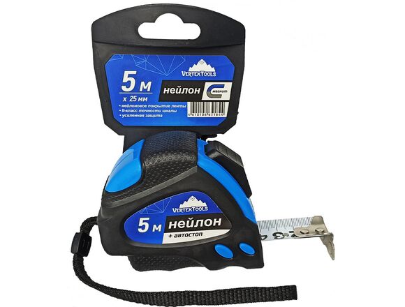 Рулетка VERTEXTOOLS НЕЙЛОН 5Х25мм + АВТОСТОП (8/96)