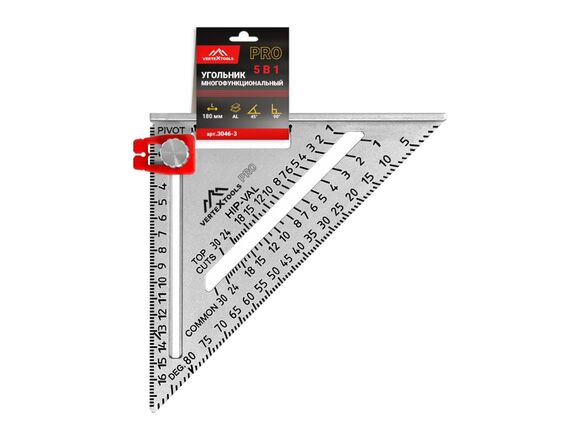 Угольник многофункциональный VERTEXTOOLS PROFI AL, подвижная шкала, плоскость+масштаб толщин(10/40)