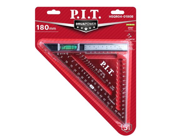 Угольник Свенсона метрический плотницкий P.I.T.180мм с пузырьковым уровнем (1/40)