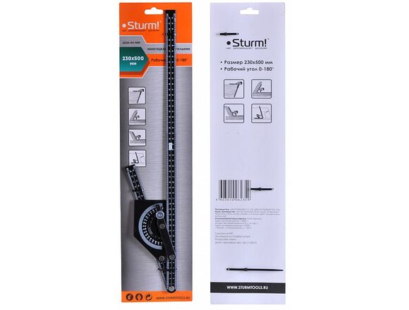 Многоцелевой угольник 230x500 мм Sturm 2020-04-500 находит применение при работе с отделочными материалами, где необходимо соблюдать точное совпадение угла.