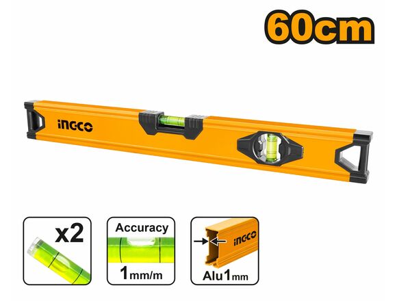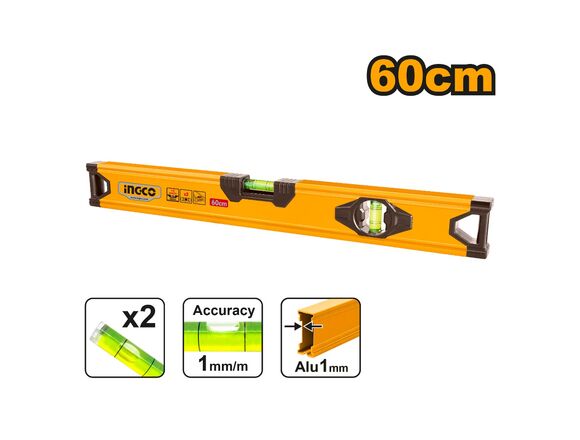 Уровень INGCO INDUSTRIAL 2 глазка 600мм, 1мм/м АНОДИРОВАННЫЙ(10/40)