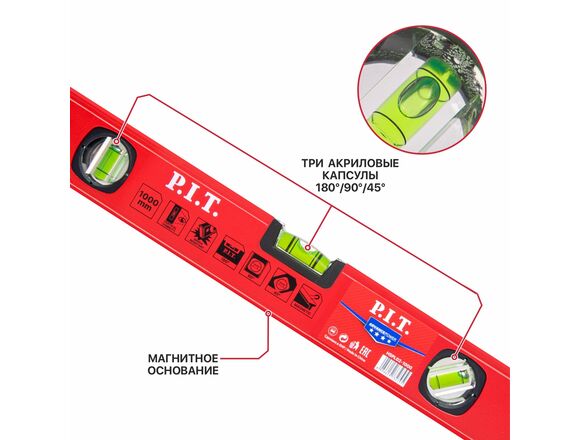 Уровень P.I.T. ADVANCE 1200мм, 3 капсулы, коробчатый,1мм/м пузырьковый магнитный (1/10)