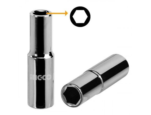 Головка торцевая УДЛИНЕННАЯ шестигранная INGCO INDUSTRIAL 1/2" 21мм, Cr-V никель (10/100)