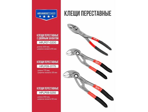 Клещи переставные P.I.T. ADVANCE 175мм V-образные губки, зев 38мм, CR-V,