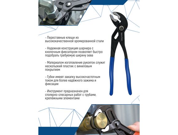 Инструмент предназначен для столярно-слесарных работ с трубами, крепёжными элементами.