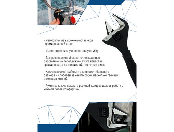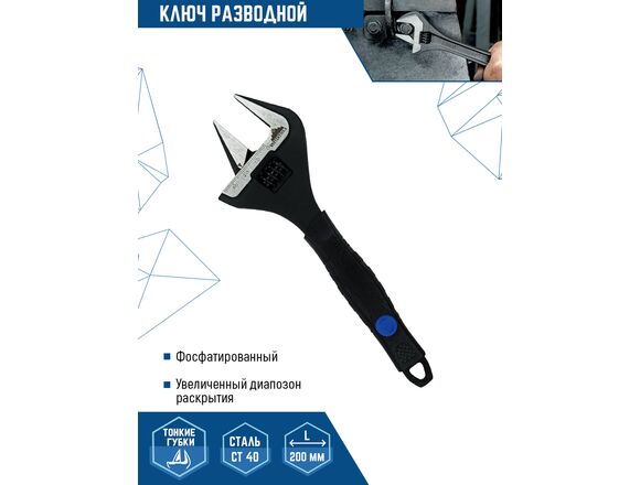 Ключ разводной VERTEX 200 мм,УСИЛЕННЫЕ ТОНКИЕ ГУБКИ обрезин. рукоятка (1/48)