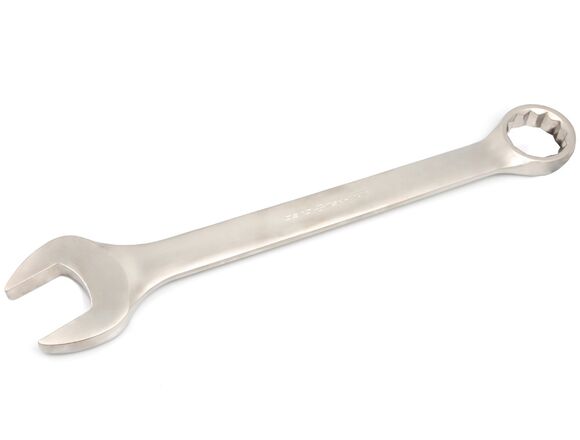 Классический вариант комбинированного гаечного ключа с рожковым профилем на одной стороне и двенадцатигранным накидным профилем на другой.Комбинированный ключ является самым распространенным вариантом гаечного ключа т.к. совмещает в себе возможности рожкового и накидного профилей.Накидной профиль отведён от продольной оси тела ключа на 15° это позволяет работать в ограниченном пространстве. Точность изготовления 12-гранного накидного профиля сводит к минимуму вероятность слизывания граней крепежа. Угол наклона рожковой части относительно продольной оси тела ключа — 15°, что позволяет довести минимальный угловой шаг при работе в труднодоступных местах до 30°.Размер: 60 ммСталь: 6140CrVТвёрдость: 44—48 HRCНикелирование