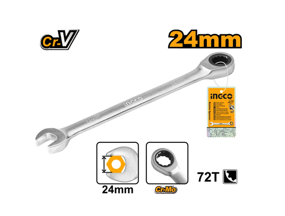 Ключ комбинированный INGCO INDUSTRIAL трещоточный 24 мм CrV (5/40)