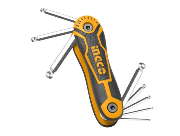 Набор шестигранников складные HEX INGCO INDUSTRIAL 2-8мм с подвесом, С ШАРОМ (12/96)