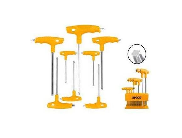 Набор Т-образных шестигранников INGCO TORX 8шт. Т10-Т50 HHKT8083 включает в себя 8 ключей различного размера, которые служат для монтажа и демонтажа крепежа с шлицем TORX.