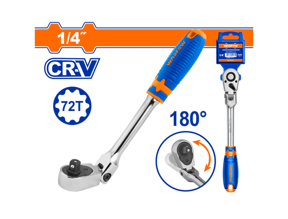 Ключ трещотка шарнирный WADFOW 1/4" 200мм 72зуб (1/80)