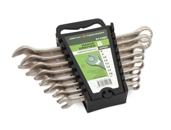 Корпус набора комбинированных ключей 8 шт холдер ДТ/20 Дело Техники 511080 выполнен из хромванадиевой стали, стойкой к большим нагрузкам.