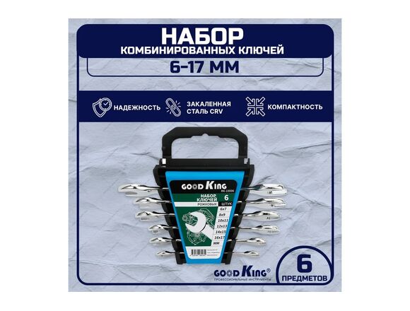 Набор ключей рожковых GOODKING 6 шт (6-17мм) с холдером