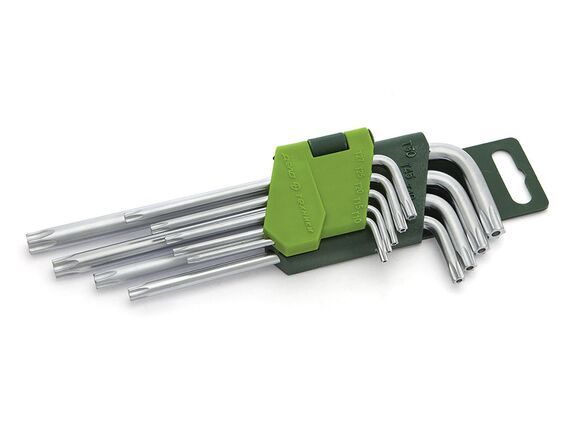 Набор ключей TORX 9 шт с отверстием ДТ/40 Дело Техники 563591 применяется для монтажа и демонтажа резьбовых соединений с шлицем TORX. Ключи с отверстием изготовлены из хромванадиевой стали, стойкой к большим нагрузкам. Г-образная форма инструмента обеспечивает большой крутящий момент.