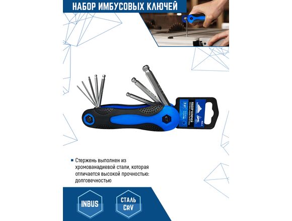 Набор имбусовых складных шестигранных ключей vertextools 1.5–8, 8 предметов 1634-8 укомплектован самыми распространенными размерами: 1,5; 2; 2,5; 3; 4; 5; 6; 8 мм для откручивания монтажных деталей с шестигранным углублением.