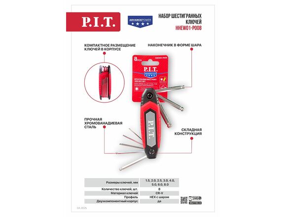 Набор шестигранников складные HEX P.I.T. ADVANCE 8шт 1,5-8мм
