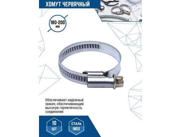 Червячный хомут vertextools нерж. сталь W2, 180-200 мм, 20 шт. 08-180-200 предназначен для многократного использования.