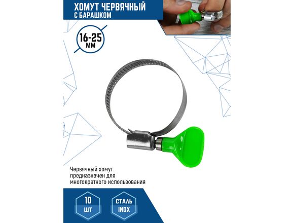 Червячный хомут с барашком vertextools нерж. сталь W2, 16-25 мм, 100 шт. 09-16-25 является достаточно быстрым и удобным способом крепления, его можно использовать как в помещении, так и на улице.