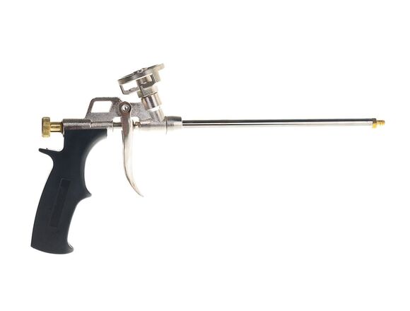Пистолет для монтажной пены Монтажник Профи 600001 используется при ремонтно-отделочных работах для заполнения пустот, оставшихся после монтажа оконных и дверных проемов.