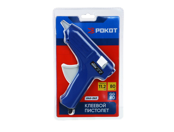 Пистолет клеевой РОКОТ 11.2мм, 80Вт, 9 гр/мин + 2 стержня (12/36)