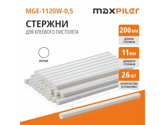 Стержни клеевые MAXPILER 11мм*200мм,уп. 500 г/26шт,белые (1/20)