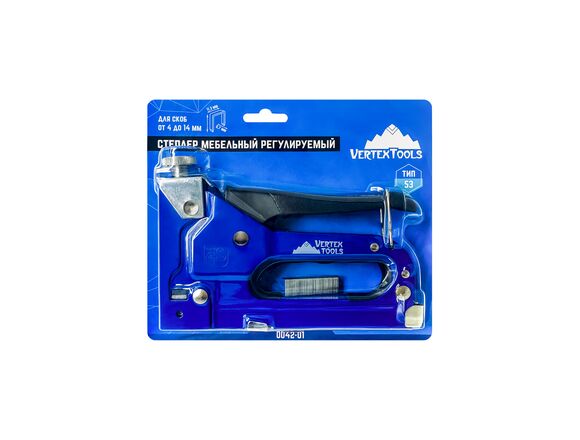 Мебельный степлер Vertextools регулируемый 53 тип 0042-01 используется для забивания мебельных скоб размером 4-6-8-10-12-14 мм при креплении тонких листовых материалов к основе из дерева или ДСП. Изготовлен из хромированной стали, что обеспечивает прочность и износостойкость.
