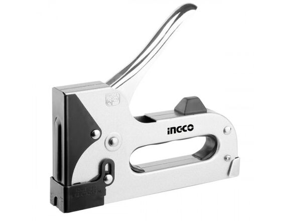 Степлер механический INGCO HSG1404 INDUSTRIAL имеет усиленную конструкцию, применяется для крепления изоляционного материала, панелей и облицовки к различным поверхностям (дерево, ДВП, ДСП, гипсокартон, пластик).