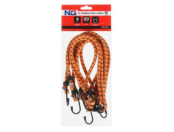 Стяжка груза (резинка) NG 4шт ПАУК, 80cм*8мм, металлические крюки