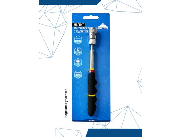 Телескопический стержень раздвигается до 810 мм. На конце стержня расположен магнит, выдерживающий нагрузку до 2,25 кг и фонарик для удобства использования.