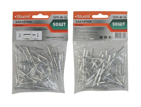 Заклепки алюминиевые STURM 4,0*16 мм (50 шт) (1/100)