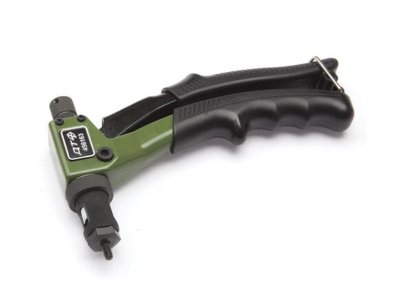 Заклепочник для резьбовых заклепок Дело Техники M3-M6 456163 используется профессионалами для соединения различных материалов при помощи потайных заклепок. Эргономичные рукоятки с резиновым покрытием обеспечивают крепкий хват. При смене насадки не требуется дополнительный инструмент. На рукоятке имеется запор для удобного хранения.