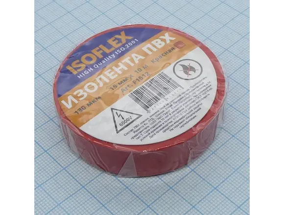 Изолента ПВХ 15мм*10м красная ISOFLEX (5/200)