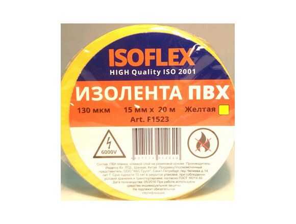 Изолента ПВХ 15мм*20м желтая ISOFLEX (5/200)