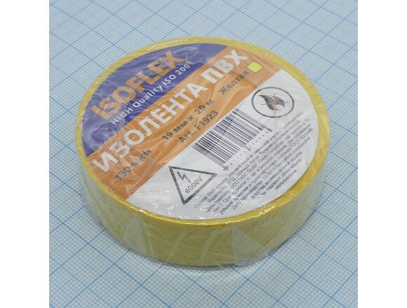 Изолента ПВХ 19мм*20м желтая ISOFLEX (5/200)