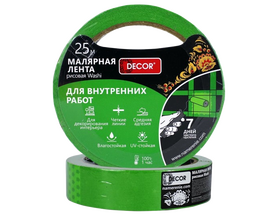 Лента малярная зеленая DЕCOR 25мм*25м, для внутренних работ (1/99)