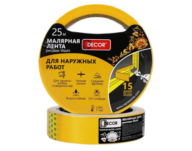 Лента малярная оранжевая DЕCOR 25мм*25м, для наружных работ (1/99)