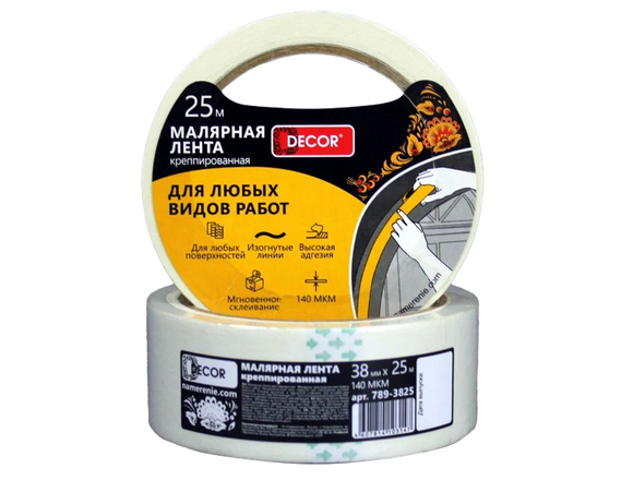 Лента малярная DECOR 48мм*25м, креппированная, 140мкм (1/54)