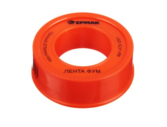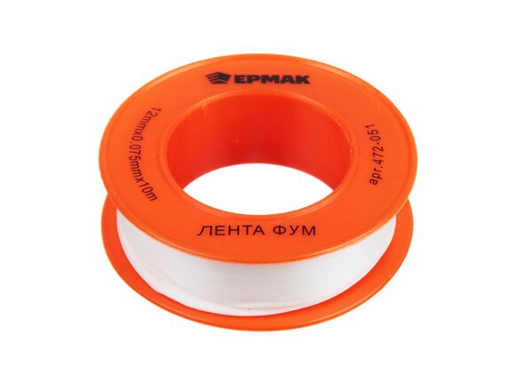 ФУМ лента ЕРМАК 1/2"/12мм х 0,075мм х 10м 472-051 используется в качестве уплотнителя при соединении водопроводных труб, любых резьбовых соединений, а также ремонте различной техники.