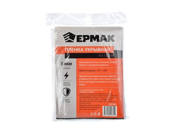 Пленка укрывная (4x12.5 м; 8 мкм) ЕРМАК 472-053 предназначена для защиты любых предметов и поверхностей от краски, пыли, стружки, штукатурки и иных загрязнений в помещениях и на открытом воздухе.