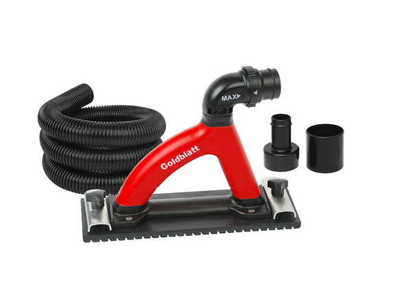 Держатель для шлифовальной сетки Goldblatt с пылеудалением G05028 предназначена для шлифовальных работ. Полотно походит для использования со стандартными 11 1/4-дюймовыми штампованными шлифовальными листами. Инструмент позволяет сократить количество пыли на 90 % с помощью беспыльной технологии инструмента. Инструмент имеет поворотное колено на 360 градусов для простоты использования на вертикальных поверхностях, а также регулируемое вентиляционное отверстие для переменной силы вакуума. Модель включает в себя 6-футовый шланг, муфту и адаптер для совместимости с большинством пылесосов магазинного типа. Размер полотна: 235х83 мм.