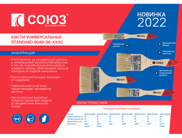Кисть СОЮЗ Standart 3" натуральная щетина, дерев. ручка (12/360)