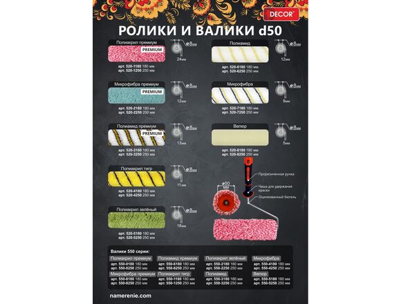Валик DECOR "PREMIUM" ФАСАДНЫЙ (полиакрил) 180мм*Ø50мм, под ручку 2К 8мм, ворс 24мм (40/80)