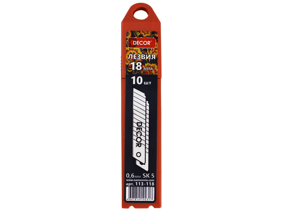 Лезвия сегментные DECOR 18мм,10шт 0,6мм, для строительного ножа (20шт/200шт)