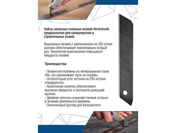 Лезвия сегментные VERTEX КАЛЕНЫЕ для ножа 18 мм "ПИРАНЬЯ" (10шт) 20/400)