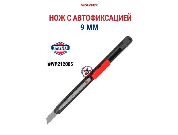 Нож с сегментным лезвием WORKPRO 9мм с автофиксацией НЕРЖ (6/24)