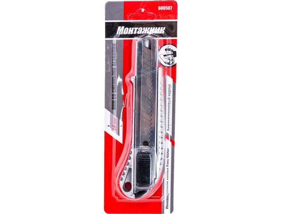 Нож с сегментным лезвием МОНТАЖНИК 18мм AL корпус, кнопка Easy Slider (12/12/144)