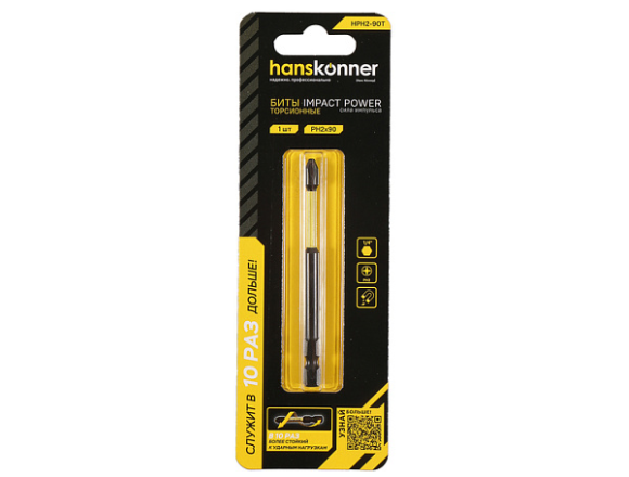 Бита HANSKONNER ImpactPower PH2*90мм (1шт), торсионная (1/20/200)