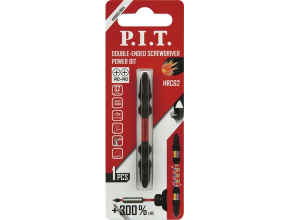 Бита ударная двусторонняя магнитная P.I.T. PH2-PH2x65мм, IMPACT, торсион, 10 шт, кейс
