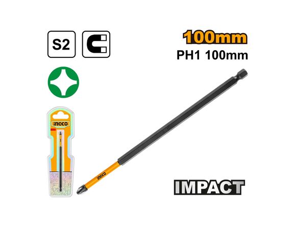 Бита ударная INGCO INDUSTRIAL PH1*100мм, IMPACT, 1шт блистер (50/600)